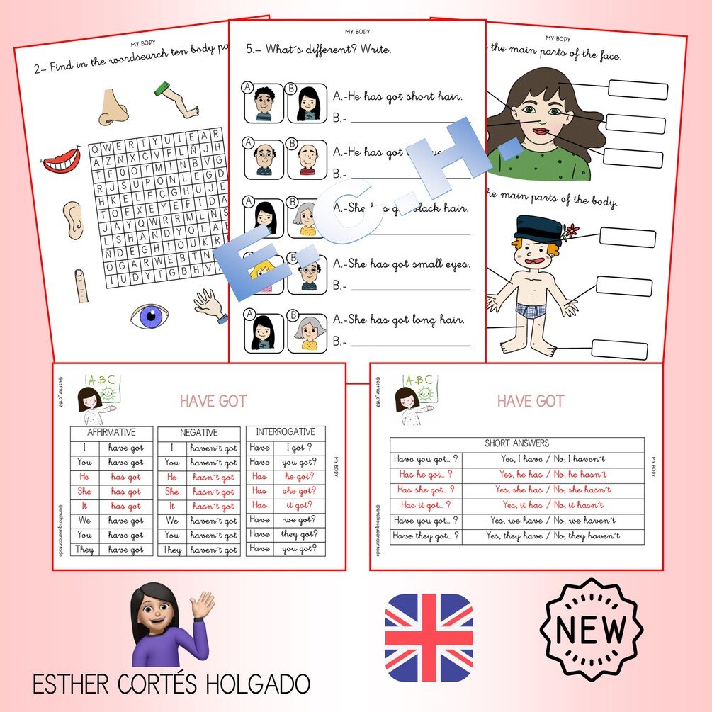 A wide variety of worksheets for learning vocabulary of body parts and the verb "have got"